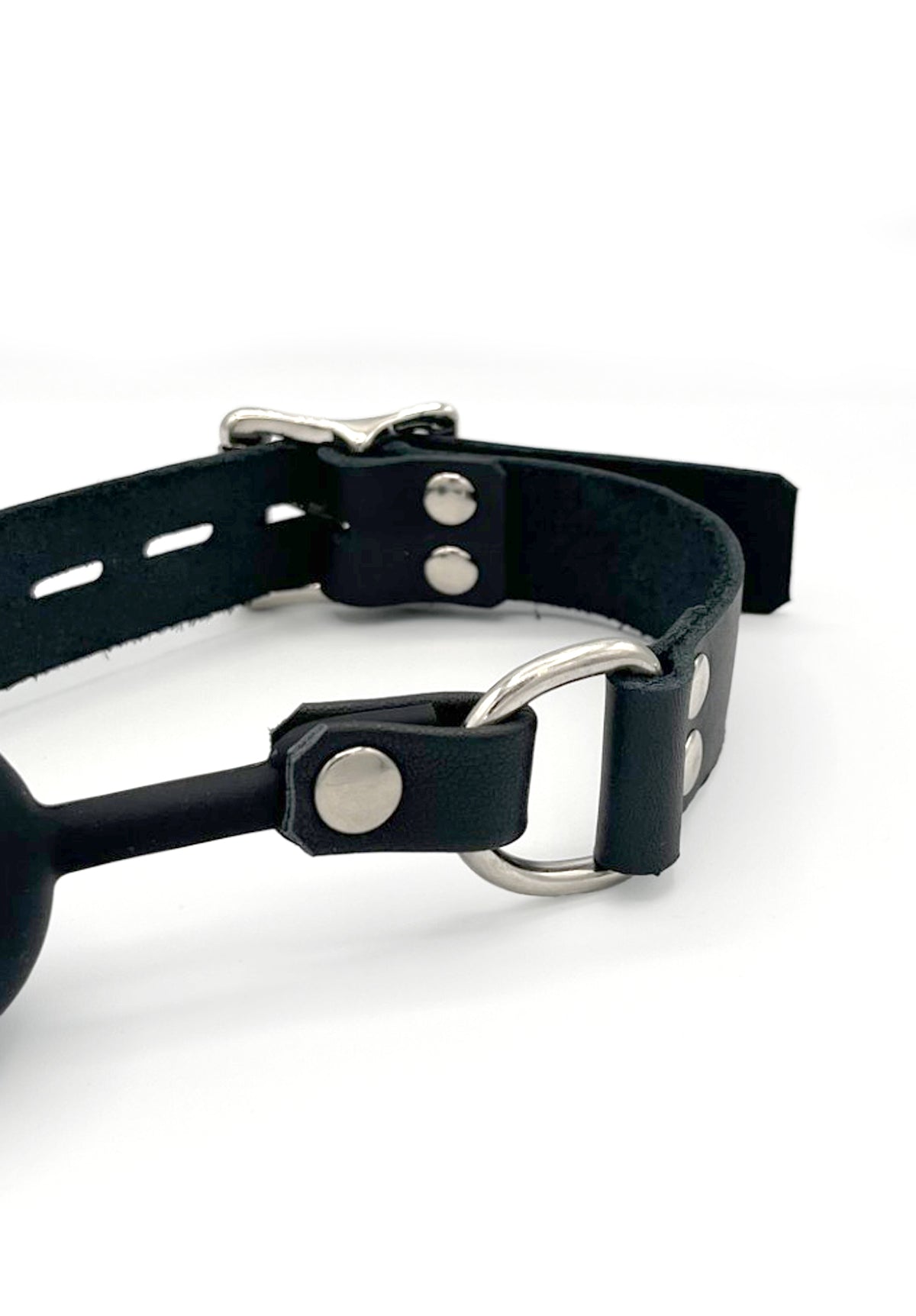 Ce bâillon en cuir haut de gamme allie confort et contrôle à un attrait pervers incomparable. Fabriqué en cuir rigide luxueux, il est doté d'une boule en silicone lisse et sans danger pour le corps de 3,8 cm (1.5po), parfaitement dimensionnée pour les soumis expérimentés comme pour les débutants curieux. La fermeture à boucle à l'arrière assure un ajustement parfait et sécurisé, tandis que les anneaux en D de chaque côté de la boule vous invitent à explorer davantage de contraintes ou de jeux créatifs.